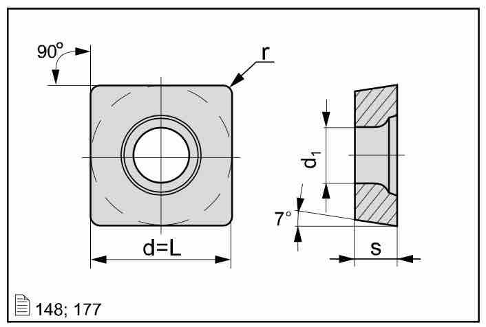 Пластина квадратной формы с тороидальным отверстием и стружколомающими канавками на одной стороне, для черновой обработки